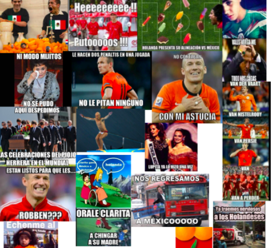 Con la polémica eliminación del mundial de México, surgió una forma de burla nacionalista al eludir la falta fingida que realizó Arjen Roben, el HT #NoEraPenal se hizo popular por más de 2 días en Twitter, de un filtro de 2500 tuits, se analizaron 200 donde la tendencia era la burla presentada con el Hashtag #NoEraPenal imágenes y frases de auto motivación y forma de superación del trago amargo que causó la baja del que para muchos se consideró una de las mejores participaciones de México en una contienda mundial.