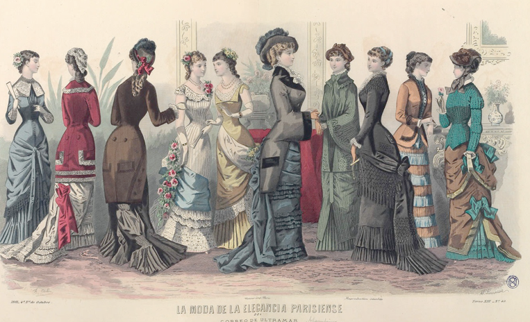 En esta imagen podemos ver la vestimenta común de las mujeres en la belle époque