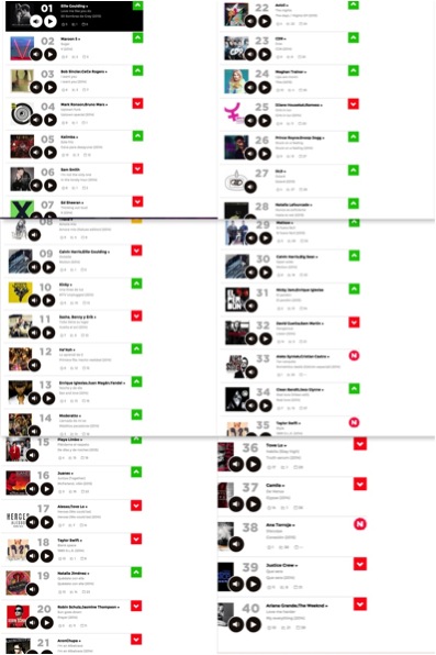 Así quedaron las votaciones de Los 40 principales, de enero a abril. Las listas fueron elegidas aleatoriamente.