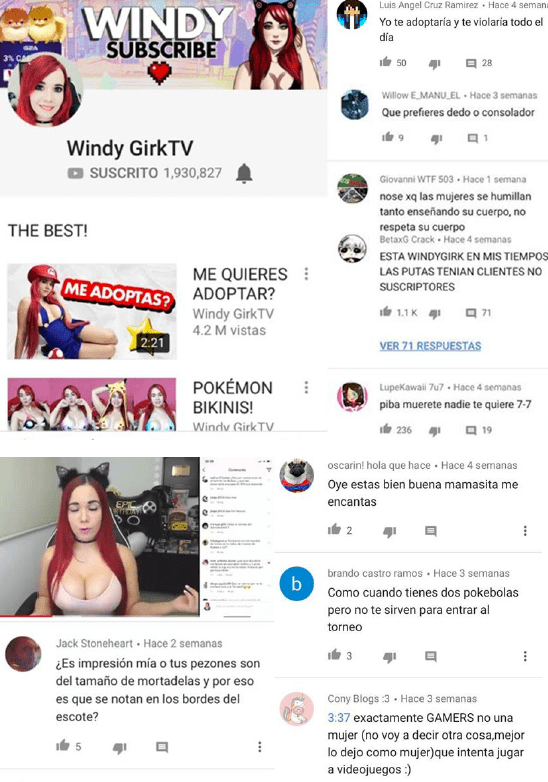 La tercer youtuber, WindyGirk es la que más subscriptores tiene, aproximadamente 1 millon de subscriptores. Cuenta con una plataforma de Patreon para brindar servicio a sus fans, con posters autografiados, sesiones de juego personalizadas, entre otros servicios. La comunidad gamer suele ser bastante agresiva en los comentarios, ya sea humillando su cuerpo, haciéndole comentarios obscenos, amenazándola o denigrando su trabajo por su físico. La mayoría de los comentarios son de este tipo, podríamos decir que esto es en relación con la cantidad de subscriptores que tiene, entre mas personas la vean mas exposición tiene y mas criticas recibe.