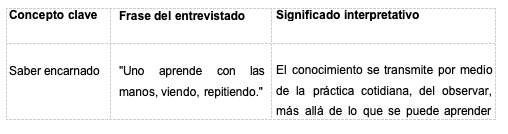 Además, el taller es un espacio comunicativo donde no todo se dice con palabras. Schechner (2002) describe estas dinámicas son acciones que comunican roles, conocimientos y emociones. Según él, “todo hacer artesanal implica una puesta en escena del saber” (p. 128), en la cual el cuerpo enseña, corrige y transmite.