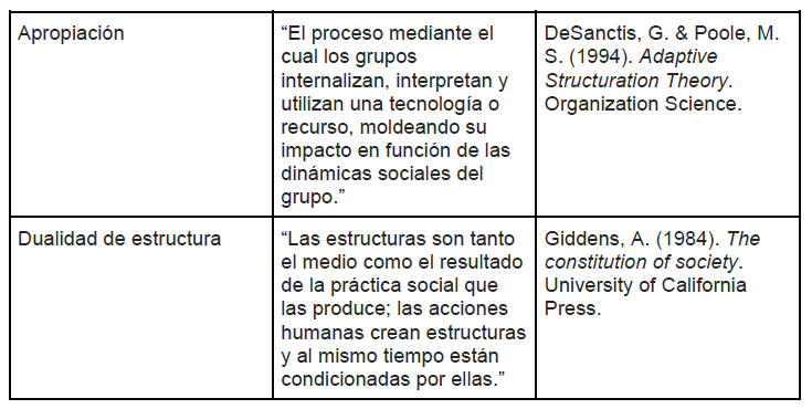 La AST es muy relevante para estudios que analizan procesos de comunicación en contextos de trabajo y cambios organizacionales, como lo pueden ser: 1. Mamás solteras en el entorno laboral mexicano: La AST permite comprender cómo las prácticas laborales y organizativas son reproducidas o modificadas por estas mujeres en su día a día. 2. Uso de recursos, el concepto de apropiación explica cómo las mamás solteras pueden reinterpretar y adaptar los recursos tecnológicos o institucionales a sus necesidades específicas. 3. Relaciones laborales y dinámicas organizativas, la dualidad estructura-agencia ayuda a analizar cómo estas mujeres navegan espacios de poder, liderazgo o exclusión, destacando su papel en la configuración de normas laborales y de comunicación.