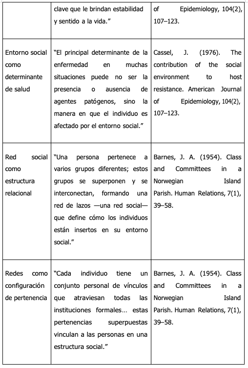 J. A. Barnes (1918-2006) fue un sociólogo y antropólogo británico que introdujo el concepto de “red social” o “social network” en 1954 en su estudio Class Comittees in a Norwegian Island Parish. Barnes se formó como antropólogo en la Universidad de Cambridge, donde se vio influenciado por las ideas de A. R. Radcliffe-Brown. Su trayectoria profesional se caracterizó por el cruce entre la antropología, la sociología y el análisis empírico de comunidades locales. En 1951 inició una investigación, una isla pesquera noruega que culminó en el artículo previamente mencionado en 1954. Este trabajo introdujo el concepto de “red social” para describir los vínculos informales que estructuran la vida humana. Cabe mencionar que Barnes nunca pensó en la salud como eje central de su teoría, sin embargo, si aportación abrió las puertas para que otras disciplinas incorporaran la idea y aportarán sus propias concusiones.