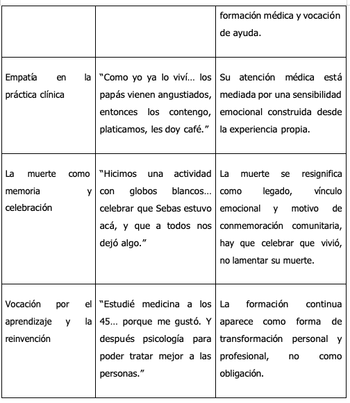 Celebra su vida, no para cerrar, sino para continuar. Porque el vínculo, como ella misma dice, “no se corta: se transforma”. Sin embargo, quizás lo más fuerte de su relato no está en lo que perdió, sino en lo que eligió hacer después: seguir con APYRE incluso sin Sebastián, estudiar medicina para ayudar a otras personas. Su historia es una de gran tragedia, pero también de gran inspiración. Estudiar medicina a los 45 años implica poner el cuerpo, el tiempo y la energía a una nueva etapa de vida. Es una manera de retomar su vida, de salir del papel de “madre triste” y convertirse en su propia persona, es utilizar el conocimiento que su experiencia de vida le ha otorgado para ayudar a otras personas. En lugar de quedar fijada en el lugar de la pérdida, Marina se proyecta como sujeto activo, que transforma su experiencia en conocimiento y acción para otros.